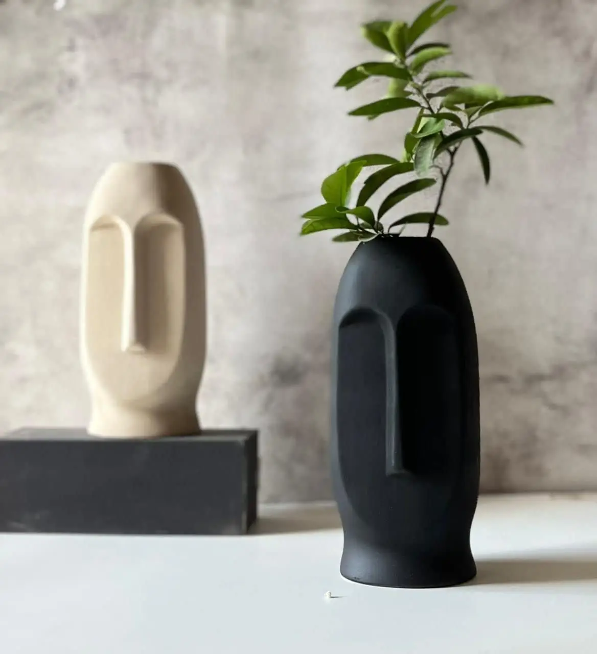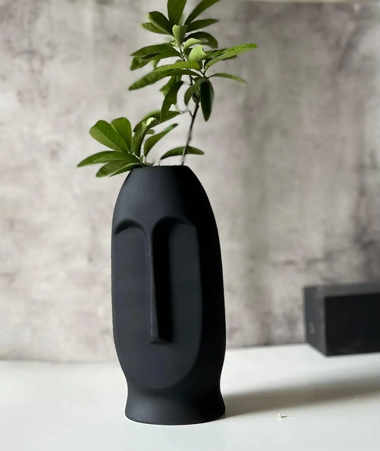 Black Ceramic Abstract Face Vase | Ceramic Flower Vase | Matte(Rough) Finish