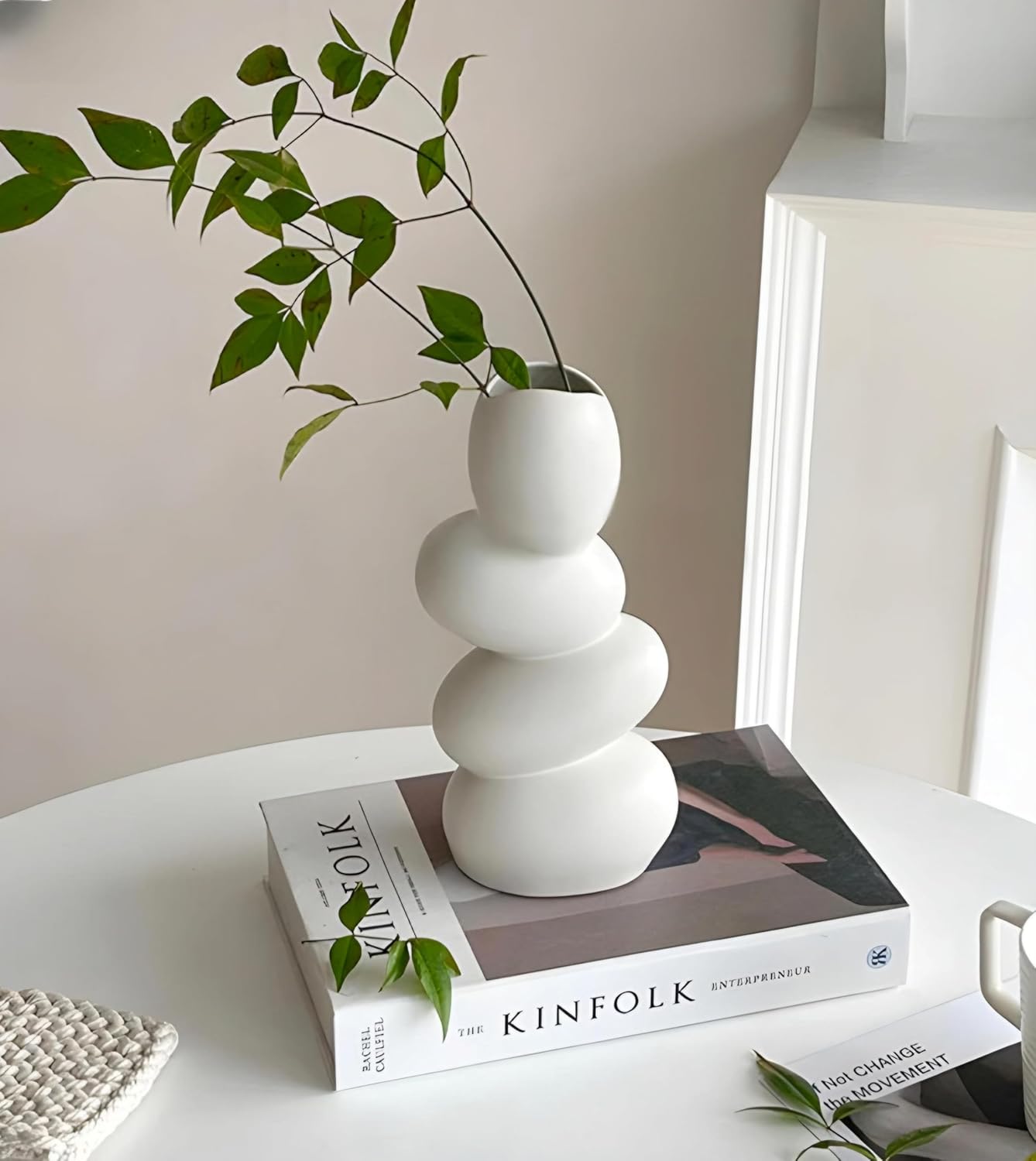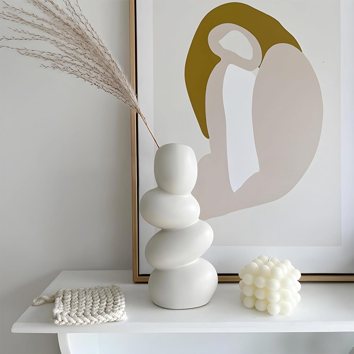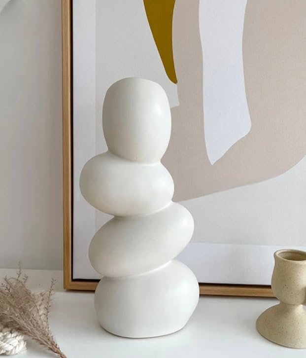 Flower Vases Home Decor- Flower Vase Big Size- Ceramic Vase- Vase for Living Room,Waterproof Earthy Matte Finish,Wave Shape,6 Inches,White (Stone)
